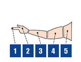 동작시간의 기준은 손가각 1인치 움직임을 최소단위로 하고 그 동작이 몇 배인가를 정수로 표시한다.