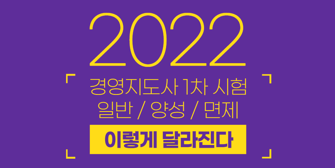 2) 면제자격 폐지 : ① 기존의 기준 중에서, 경영/경제분야 또는 자연과학분야 박사학위자로서 학교에서 3년이상 전공강의자 또는 지도실시기관에서 경영지도 또는 기술지도와 관련한 근무경력자. ② 석사학위를 취득하고 관련분야에서 5년이상 실무경력자는 2022년도 경영지도사 1차시험부터 면제되지 않습니다. 또한 해당 요건으로 기 면제자격을 취득한 인원도 2022년도부터는 면제자격에 해당되지 않으니 참고하시기 바랍니다.