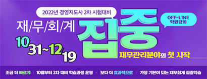 이에, 2022년 경영지도사 재무관리분야 대비 과정을 10월 말부터 주말반으로 진행합니다. 이번 개강은 실강(학원강의)이며, 인터넷(인강) 강의는 실강 개강 이후 개설 예정이니 참고해주세요~